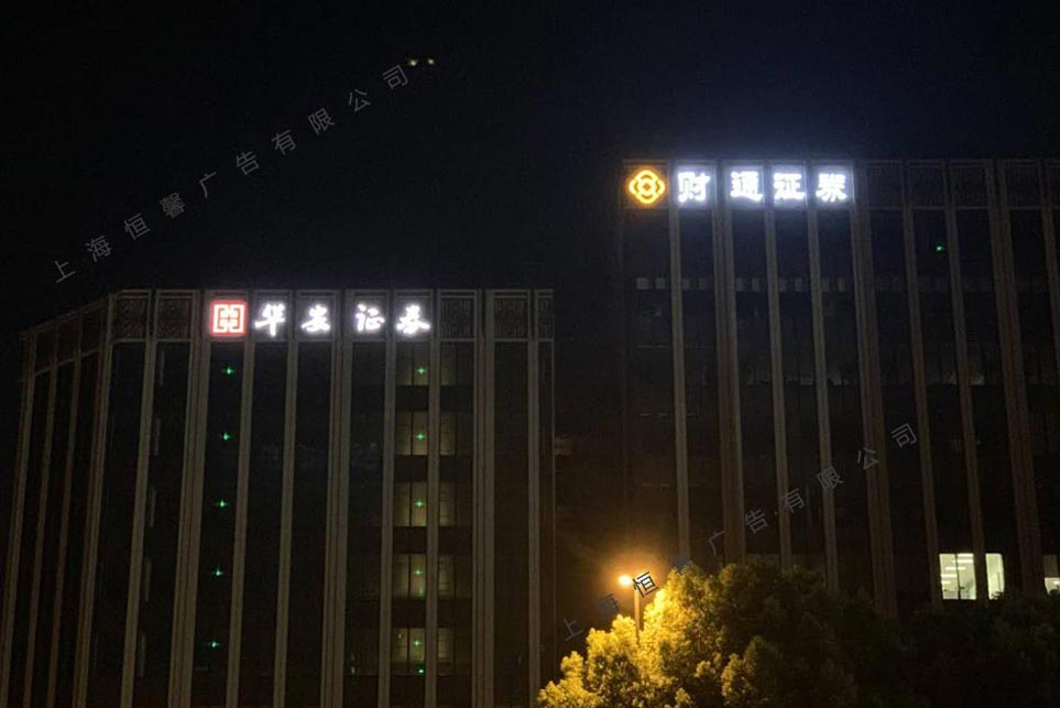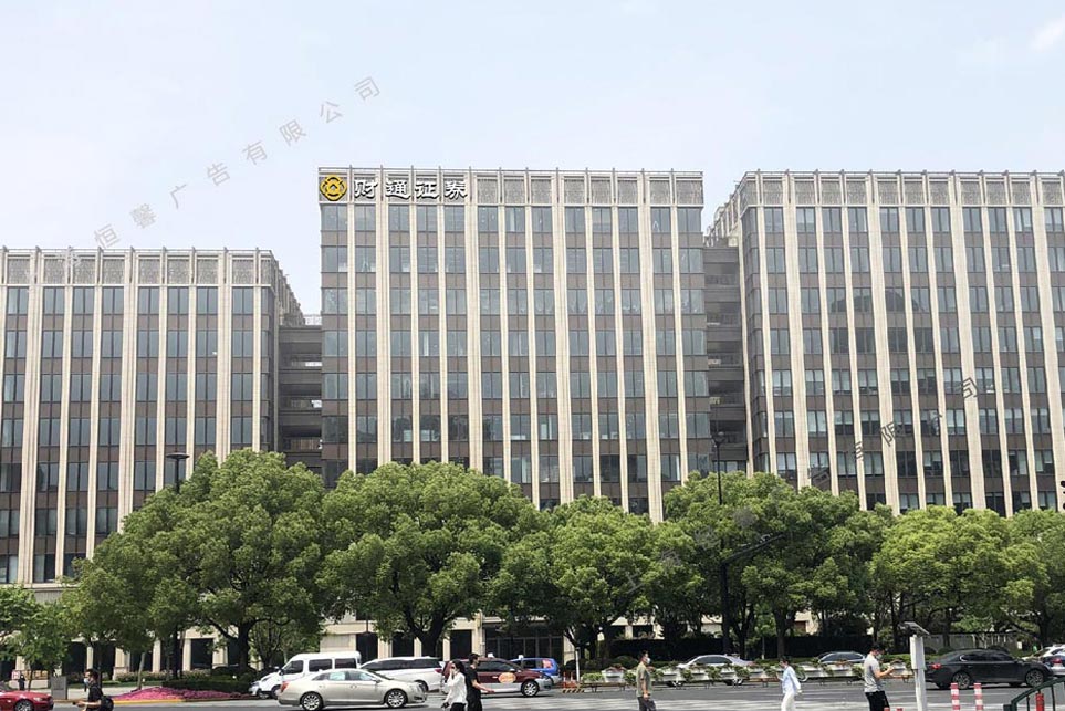 設(shè)計(jì)理念: 項(xiàng)目名稱:財(cái)通證券墻面發(fā)光字標(biāo)識 項(xiàng)目地址:上海閔行梅隴都莊路4226號 項(xiàng)目時間:2020年10月 施工周期:6個工作日 此次財(cái)通證券樓體墻面發(fā)光字標(biāo)識屬于高空作業(yè),采用人工下吊安裝。