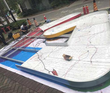 樓頂招牌項目從現(xiàn)場勘測、設計、鋼結(jié)構(gòu)深化、招牌審批、到施工安裝一站式服務